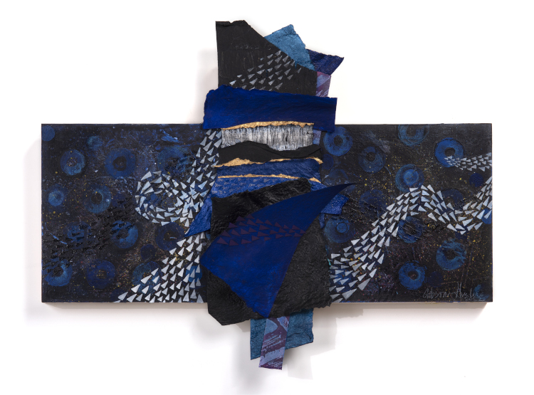 Night Flight Acrylic paint, embossing powder, colored pencil, 23 1/2 x 30 1/4 x 5" 2022